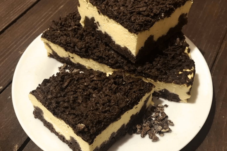 Formę wyłożyć papierem do pieczenia. Spód wylepić jedną częścią ciasta. Na to przelać masę serową. Na górę zetrzeć pozostałą część ciasta. Piec w temperaturze 180°C przez około 50 minut (warto kontrolować wypiek).