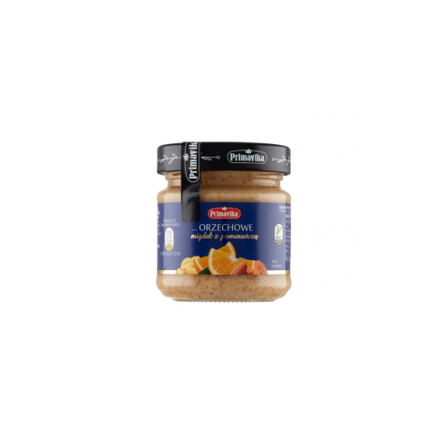 Składniki: prażone orzeszki arachidowe 52%, migdał prażony 31%, cukier puder, skórka pomarańczowa kandyzowana BIO 4,5% (syrop glukozowy BIO 75%, skórka pomarańczowa BIO 25%), olej rzepakowy, naturalny aromat pomarańczowy, naturalne aromaty: cytrynowy i migdałowy z innymi naturalnymi aromatami, sól morska.