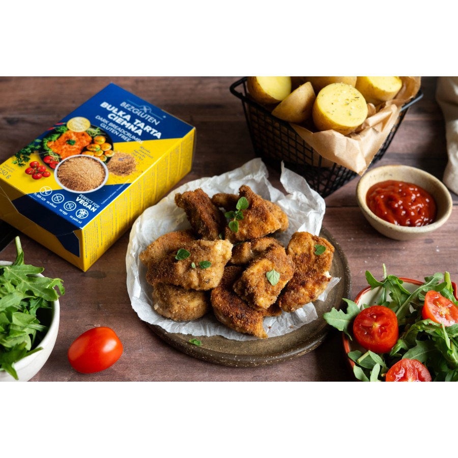 Bezglutenowa bułka tarta ciemna 250 g to produkt idealny dla osób na diecie bezglutenowej, poszukujących zdrowszych alternatyw w codziennym gotowaniu. Nie zawiera oleju palmowego, skrobi pszennej ani jaj, co czyni ją odpowiednią także dla osób z dodatkowymi ograniczeniami dietetycznymi. Dzięki wysokiej zawartości błonnika pokarmowego, wzbogaconego o błonnik z babki jajowatej i błonnik kakaowy, wspiera prawidłowe funkcjonowanie układu trawiennego. Dodatkową zaletą jest stabilność ciasta po wysmażeniu, co przekłada się na lepszą strukturę i konsystencję dań. To doskonały wybór do panierowania, zagęszczania oraz jako składnik różnego rodzaju farszów i wypieków.