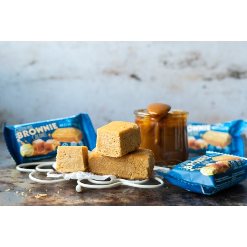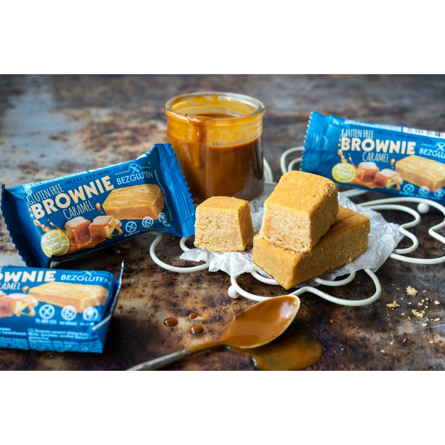 Szukasz pysznej i bezpiecznej przekąski bez glutenu? Wypróbuj nasze brownie karmelowe 40g, idealny dla osób z nietolerancją! Delikatna struktura, intensywny smak białej czekolady i karmelu, a do tego bez dodatku glutenu – to idealny wybór na słodką chwilę w ciągu dnia.